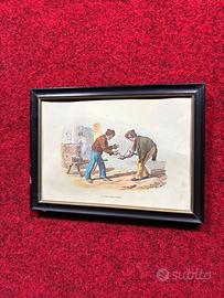 stampa litografica vecchia manifattura il giuoco della morra, cornice in legno, dimensione 21x25cm, spedizione professionale con cartone ondulato polistirolo, ben imballato altre info e altre foto tel e w. 3314808197
