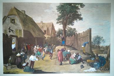 Stampa raffigurante un momento della vita rurale Nord europea.