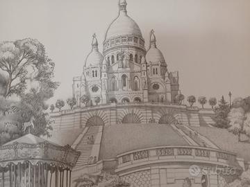 Stampa Parigi vista Sacro Cuore. Larghezza cm 46, altezza cm 34
