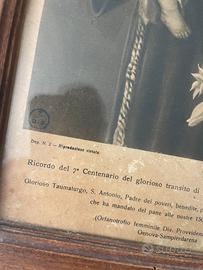 Queste stampe devozionali erano molto diffuse nelle case cattoliche durante la prima metà del XX secolo, specialmente in Italia. Sono particolarmente apprezzate dai collezionisti di arte sacra, devoti di Sant'Antonio e studiosi di iconografia religiosa per il loro valore storico e spirituale, rappresentando un periodo in cui la devozione popolare si esprimeva attraverso immagini sacre accessibili alle famiglie comuni.