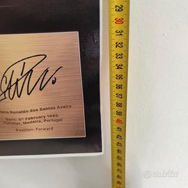 * Una placca metallica con l'autografo stampato di Cristiano Ronaldo dos Santos Aveiro.