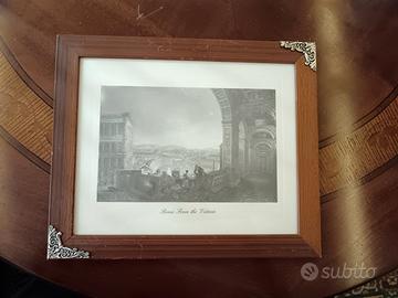 Creazione prezioso artistico. Metodo antico delle grane fini. Vecchia stampa. La stampa ottimi condizioni. La cornice graffiata. Zona Esquilino. Roma.