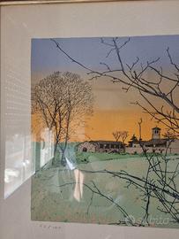 🖼️ Paesaggio rurale al tramonto – Stampa d’arte firmata, tiratura 67/100, 76x55 cm