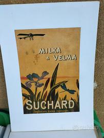 Stampa vintage Milka e Velma Suchard CHOCCOLATS EXTRA FONDANTS primi 900 verosimilmente anni '10 cm 23 x 16 su cartoncino bianci cm 35 x 25 e contornato anteriormente da sottile cartoncino bianco a cornice anteriore in perfette condizioni X COLLEZIONISTI