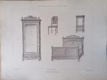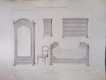 Serie di stampe d epoca con copertina cartonata raccogli tavole. 2 serie. Arredamento completo di tutti gli stili di Bettin & Compagnon. Libreria di mobili speciali. Medaglia d oro esposizione universale di Parigi 1900. E. THEZARD FILS EDITORE A. DOURDAN (seine et oise). 40x55 misura stampe