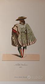 43 stampe con immagini di figure medioevali e sul retro breve descrizione