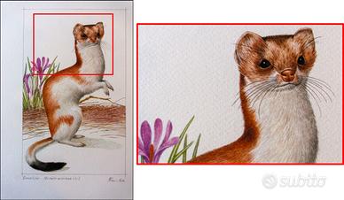 Raccolta di quattro acquarelli/stampe del 1995 di Franco Testa che illustrano in grande dettaglio degli animaletti.