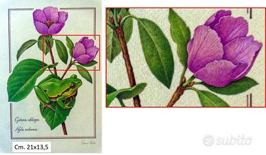 Raccolta di quattro stampe del 1994 di Franco Testa che illustrano in grande dettaglio piante e animali.