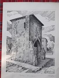 Porte di Bologna, stampe numerate e firmate in calce dall'autore, 1980-1982. Tiratura 100 copie di ognuna. Dimensioni 35x48 cm. Il prezzo indicato è per singola stampa. Sono Porta S. Stefano, Porta S. Vitale, Porta S. Donato, Porta S. Isaia, Porta Mascarella.