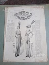 vendo n.14 stampe acquellate originali, dimensioni 32 x 43 cm, al costo di 30 euro cadauna, vendo 4 stampe con tante figure femminili misurano 64 x 42 cm, al costo di 70 euro cadauna, vendo 3 stampe 32 x 43 cm con tre figure femminili, al costo di 35 euro cadauna,stampate in litografia con bella acquerellatura coeva, tratte dalla rivista di moda "Luxe Parisien, come da fotografia, illustrano figurini con abiti per femminili. vendo 2 riviste febbraio 1913 e giugno 1913 "Grand Luxe Parisien"formata da 8 facciate scritta in lingua francese misura 43 x 32 cm costo 25 euro cadauna, si vende tutto in blocco o separatamente, disponibile a fornire in privato altre fotografie.