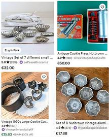 Set di stampini in metallo per dolci e cioccolatini (NB. contattatemi per altre foto) Tommaso M. Nutbrown iniziò nel 1938. Produttore di prodotti per la cucina e la casa in generale, di Walker Street, Blackpool. inghilterra arredamento fantastico per un ristorante o una pasticceria o un collezionista
