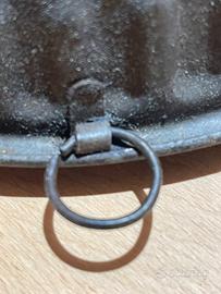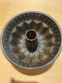 Stampo antico da cucina per budino o ciambella, con foro centrale, realizzato in ferro , databile tra fine Ottocento e primi del Novecento.
