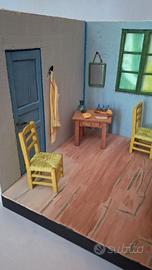 Riproduzione della Stanza di Vincent Van Gogh ad Arles. Realizzata a mano utilizzando principalmente materiali di recupero. Dimensioni: lunghezza 33,5 cm altezza 25 cm profondità 28 cm. Spedizione in Italia compresa nel prezzo. Pezzo unico.