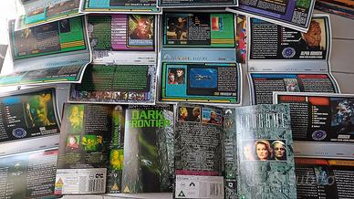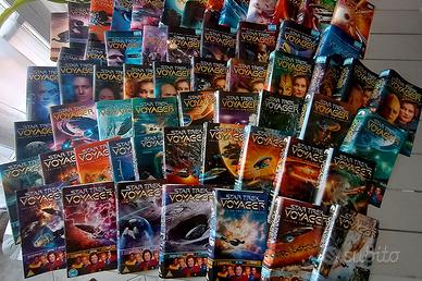Lotto di ben 59 splendide copertine/datalog originali delle videocassette VHS inglesi di importazione della strepitosa serie Star Trek Voyager, ideali per trekker collezionisti e per pareti decorative per fan: ogni copertina, con eccezionali stampe a colori di qualità su entrambi i lati, comprende descrizioni informative (datalog) IN INGLESE di personaggi, contenuti, oggetti e storie del mondo di Star Trek Voyager, con riferimenti anche a The Next Generation; il lotto comprende anche due rarissime copertine delle edizioni speciali di Voyager (episodi concatenati o estesi: Dark Frontier, Endgame, Tsunkatse).