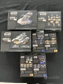 Lotto Star Wars Legion composto da: - Set base (1a Edizione) defustellato, miniature montate e primerate, tutte le componenti presenti e inutilizzate - Set base (Clone Wars) confezione nuova, componenti da defustellare e miniature nuove da assemblare. - Darth Maul and Sith Probe Droids (NUOVO) - Anakin Skywalker VENDUTO - Republic Specialists VENDUTO - Separatist Specialists VENDUTO - Phase II Clone Troopers (NUOVO CELLOPHANE) - AAT Trade Federation Battle Tank VENDUTO - TX-130 Saber-Class Fighter Tank VENDUTO Le seguenti unità sono nuove, da assemblare, con eventuali token e istruzioni (tutto ORIGINALE) ma senza confezione (ho purtroppo buttato le confezioni per facilità di stoccaggio, prima di decidere di vendere tutto) - Padme Amidala - Soldati di Flotta Ribelli - Assaltatori Imperiali - Veterani Ribelli - Imperatore Palpatine - Darth Vader - Luke Skywalker ep3 - Soldati Ribelli - Generale Veers - Specialisti Imperiali - Scout Assaltatori Imperiali - Cassian Andor & K-2SO - Phase I Clone Trooper - Assaltatori da Neve Imperiali - Squadra Cannone Laser 1.4 FD Ribelle - Clan Wren VENDUTO - ARC Troopers VENDUTO - STAP Riders VENDUTO - Republic AT-RT - BX-Series Droid Commandos VENDUTO - Commando Ribelli - Specialisti Ribelli - Inferno Squad VENDUTO - Iden Versio & ID10 - Squadra Blaster Pesante E-WEB - Cad Bane - Boba Fett (Assemblato) - Death Troopers (Assemblati) - Guardie Reali Imperiali (Assemblati) - Jyn Erso (Assemblato) - Direttore Orson Krennic (Assemblato) Posso fornire foto su richiesta di tutti i pezzi elencati