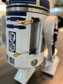 R2 D2 ha un altezza di 50 cm, larghezza frontale di 31 cm, profondità di 31 cm per un peso di Kg. 6,2.
