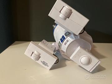 Vendo robottino di Star Wars R2-D2 della Walt Disney alto 30 cm si muove da solo muove la parte superiore ed emette effetti sonori in perfette condizioni ha bisogno di sei batterie AA (non comprese) il vano batterie è privo di ossidazioni è sprovvisto di scatola originale