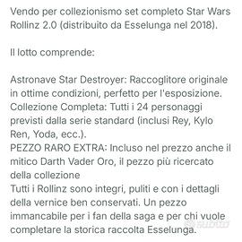 vendo per collezionismo set completo Star wars Rollinz 2.0 (distribuito da Esselunga 2018) leggere nelle foto la descrizione completa!