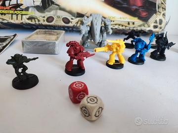 Starquest Lo Scontro Finale MB Gioco da tavolo, incompleto 1990. Comprende: - scatola originale - libretto istruzioni - 4 tabelloni - 4 muri - 2 fermagli per muri (su 5) - 64 carte ancora incartate - 24 porte + 21 basi porte - 1 pannello controllo alieno - 3 porte stagne - 5 dadi - 8 orchi - 14 gretchin - 3 ladri generici - 1 dreadnought - 5 combattenti rossi, 5 gialli, 5 neri, 5 blu - segnalini blip