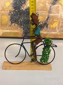 Tecnica: Scultura in filo metallico nero modellato per creare la struttura della bicicletta e lo scheletro della figura.