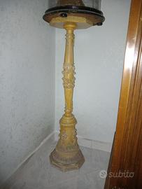 Splendida statua del Bambin Gesù, realizzata con grande attenzione ai dettagli e custodita sotto una campana di vetro che ne preserva la bellezza e il valore. La figura è arricchita da una corona dorata e un manto finemente decorato, simbolo di regalità e sacralità. Il tutto è poggiato su un elegante piedistallo in legno intagliato e decorato, che dona ulteriore prestigio all’opera. Questo pezzo unico rappresenta un perfetto connubio tra fede, tradizione e arte sacra, ideale per collezionisti, arredamenti di pregio o come elemento distintivo per una cappella o uno spazio dedicato alla devozione.