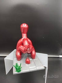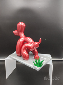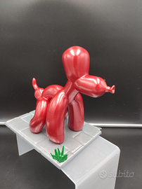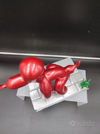 Statua Balloon Dog color rosso metallizzato con base, in resina, dipinto a mano. Altezza circa 15 cm (comprensiva di base).