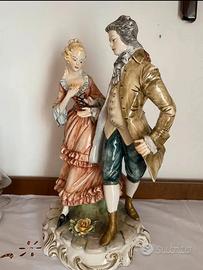 Coppia dama e cavaliere in ceramica di Bassano, altezza cm. 45.