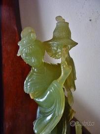 Statua cinese vintage in giada - figura femminile