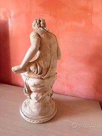 Elegante scultura decorativa d’ispirazione classica, ideale come prestigioso elemento d’arredo per interni o esterni riparati. * Dettagli artistici: Ottima fattura dei volti e del panneggio della veste. La conchiglia può essere utilizzata come svuota-tasche o come base per una composizione di fiori secchi/pot-pourri. * Materiale: Composto solido di polvere di marmo e resina. La finitura è color crema con patinatura antica, che conferisce alla statua un aspetto autentico e vissuto. * Dimensioni: Altezza circa 54 cm. * Condizioni: Perfette, nessun segno di rottura o restauro