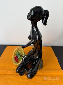 Figura femminile stilizzata, smalto nero lucido con ciotola di smalto craquelé.