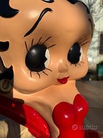 Vendo bellissima e rara statua da esposizione della leggendaria Betty Boop, perfetta per collezionisti, amanti del modernariato pop o per dare un tocco vintage e originale all'arredamento di casa o di un locale. Questa particolare versione ritrae Betty nelle simpatiche vesti di "diavoletta" (con piccole corna nere), un elegante abitino rosso e tacchi abbinati, seduta davanti a un grande cuore rosso. Dettagli dell'oggetto: • Materiale: Resina/Vetroresina (struttura solida ma cava all'interno per non risultare eccessivamente pesante). • Dimensioni: Circa 50 x 50 x 50 cm. Un formato medio-grande, di grande impatto visivo. • Condizioni: Ottime. Come visibile in foto, la verniciatura lucida è in splendido stato e i colori sono vividi e brillanti. Non presenta sbeccature evidenti o crepe strutturali. Ideale anche come idea regalo originale e introvabile! Prezzo: 250€ Disponibile per il ritiro a mano in zona chiari, mazzano, Brescia .