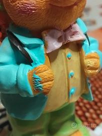Elegantesoprammobile artigianaleche ritrae un coniglio dal carattere classico e fiabesco, perfetto per amanti del genere country o per chi desidera un dettaglio originale in cucina o in soggiorno.