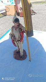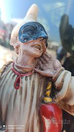 Bellissima statua di Pulcinella alta intorno ai 35 cm, decorata con colori vivaci,posta su base di finta pietra