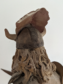 Rara statua rappresentante personaggio Vichingo, come si nota dalle foto ha qualche segno di usura, elmo, scudo.