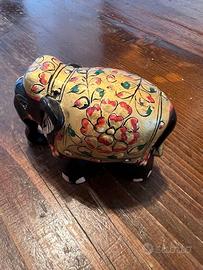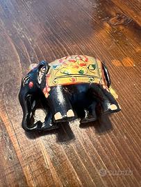 Statua Elefante Indiano Anni 50 Originale. Perfettamente conservato, in condizioni impeccabili. In legno a decorazioni floreali, realizzato a mano. Acquistato in India, negli Anni 50. Dimensioni: lunghezza 10 cm, altezza 6 cm e larghezza 5 cm. Da usare, da esporre in casa o sulla propria scrivania ma anche da regalare. Un pezzo unico. Introvabile. Bellissimo.