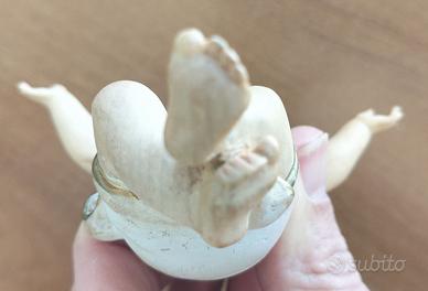 Statua Bambino Gesù DOLFI in legno d'acero intagliato a mano in Val Gardena. Cm 12. Pittura a mano pastello. Come si vede in foto, sono scalfiti i due pollici e due dita delle mani. Con scatola originale.
