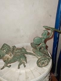 statua in bronzo soldato con carozza e 2 cavalli lunghezza 24 cm