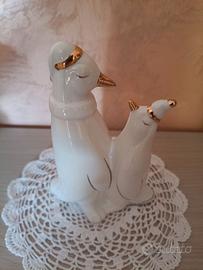 Statua in ceramica coppia di pinguini in bianco e dorato. Dimensioni: 16cm altezza Ottime condizioni. Possibile spedizione.