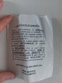 Vendo una scultura in cristallo di piombo al 24% PbO raffigurante il Vicebrigadiere dei Carabinieri Salvo D'Acquisto, Medaglia d'Oro al Valor Militare. Questa statua è un'opera d'arte in edizione limitata, realizzata in esclusiva per Arma Service-Comitex dal maestro cristalliere Vasco Conti.