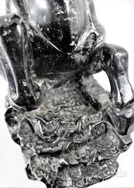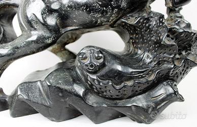 Vecchio manufatto classico orientale Cinese interamente scolpito a mano, probabilmente in pietra di tormalina nera dello XinJiang.