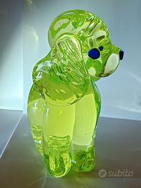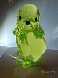 Bellissima statua raffigurante un cane spaniel con occhi Blue in vetro di murano all'uranio, tecnica utilizzata negli anni 50/ 60 con l uranio nel vetro, il vetro si illumina intensamente sé e esposto alla luce ultravioletta, la statua misura altezza cm 17 diametro 8 cm..in perfette condizioni!!!