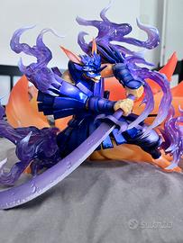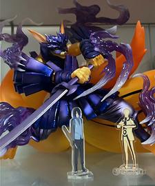 La figura rappresenta Naruto fuso con Kurama, corazzato d’energia in stile Susanoo viola, con lama di chakra e posa da battaglia