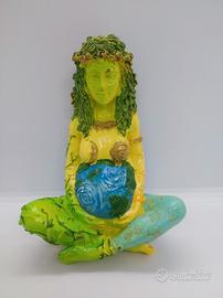 Porta un pezzo di armonia e connessione con la natura nella tua casa con questa magnifica statua della Madre Terra, Gaia. Un'opera d'arte artigianale che incarna la Dea della Vita e della Fertilità, custode del nostro pianeta.
