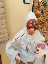 vendo statua Pulcinella su botte vintage in terracotta e tessuti originali alta cm. 35.