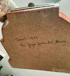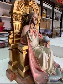 Statua del Sacro Cuore di Gesu’ in trono di manifattura spagnola , realizzata in pasta di legno con occhi di vetro