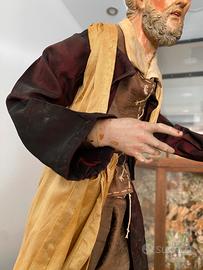 Statua di S. Giuseppe altezza 53 cm. Testa e gambe in terracotta , mani in legno, vestiti in seta , occhi in vetro.