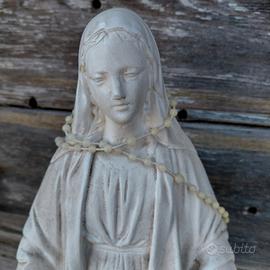 statua della Vergine Maria, comunemente identificata come la Madonna Miracolosa o Immacolata, realizzata in Gesso alta 46 cm Posizione: Rappresentata in piedi con le braccia aperte in segno di accoglienza e devozione. Utilizzo: Oggetto di devozione religiosa per interni o esterni, come giardini o altari domestico ... essendo un oggetto Vintage può presentare piccole imperfezioni dettati dall'utilizzo nel tempo.