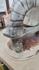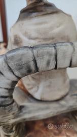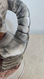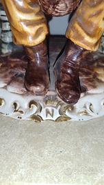Statua Vintage in Ceramica di Capodimonte "Il Tamburino" – 31 cm Altezza Imponente scultura in ceramica artistica di Capodimonte raffigurante un anziano musicista intento a suonare il tamburo. L'opera si distingue per lo straordinario realismo espressivo del volto e delle mani, caratteristica tipica della scuola di Capodimonte nel ritrarre personaggi popolari con dignità e carattere. Le dimensioni generose (31 cm) e la finitura materica della ceramica ne fanno un pezzo di grande presenza scenica. Questa statua è perfetta per collezionisti che ricercano soggetti di carattere e opere che celebrano la tradizione musicale popolare italiana. Un elemento d'arredo classico e di forte personalità, capace di diventare il punto focale di una stanza. Materiale: Ceramica artistica di Capodimonte. Lavorazione: Interamente rifinita e dipinta a mano (Hand-painted). Dimensioni: Altezza 31 cm | Larghezza 20 cm | Profondità 18 cm. Marchio: Marchio di autenticità e firma presenti sulla base. Condizioni: L'oggetto presenta un restauro, come chiaramente evidenziato nelle fotografie di dettaglio. Nonostante l'intervento, la statua mantiene intatto il suo fascino artistico e la sua solidità. Venduta con formula "visto e piaciuto".