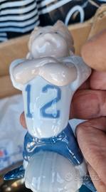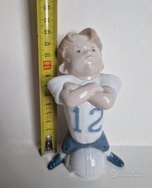 Statuina in porcellana , creazione Nao by Lladró, parte di una collezione di figure fatte a mano che rappresentano l'alta qualità e la tradizione artigianale spagnola. Le figure Nao sono una linea distintiva nata dal marchio Lladró, introdotta negli anni '60. Sono realizzate in porcellana finissima, meticolosamente rifinite a mano. Il soggetto rappresentato è un ragazzo che pratica il calcio. Titolo dell''opera: "Sono una roccia" Anno : 2005 Scultore: Javier Molina Dimensioni:14X7 Condizioni ottime