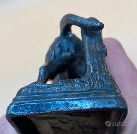 Splendida rappresentazione di cane da caccia nel momento della punta, prodotta dalla fabbrica tedesca WMF e realizzata fra il 1896 ed il 1903. Placcata argento.